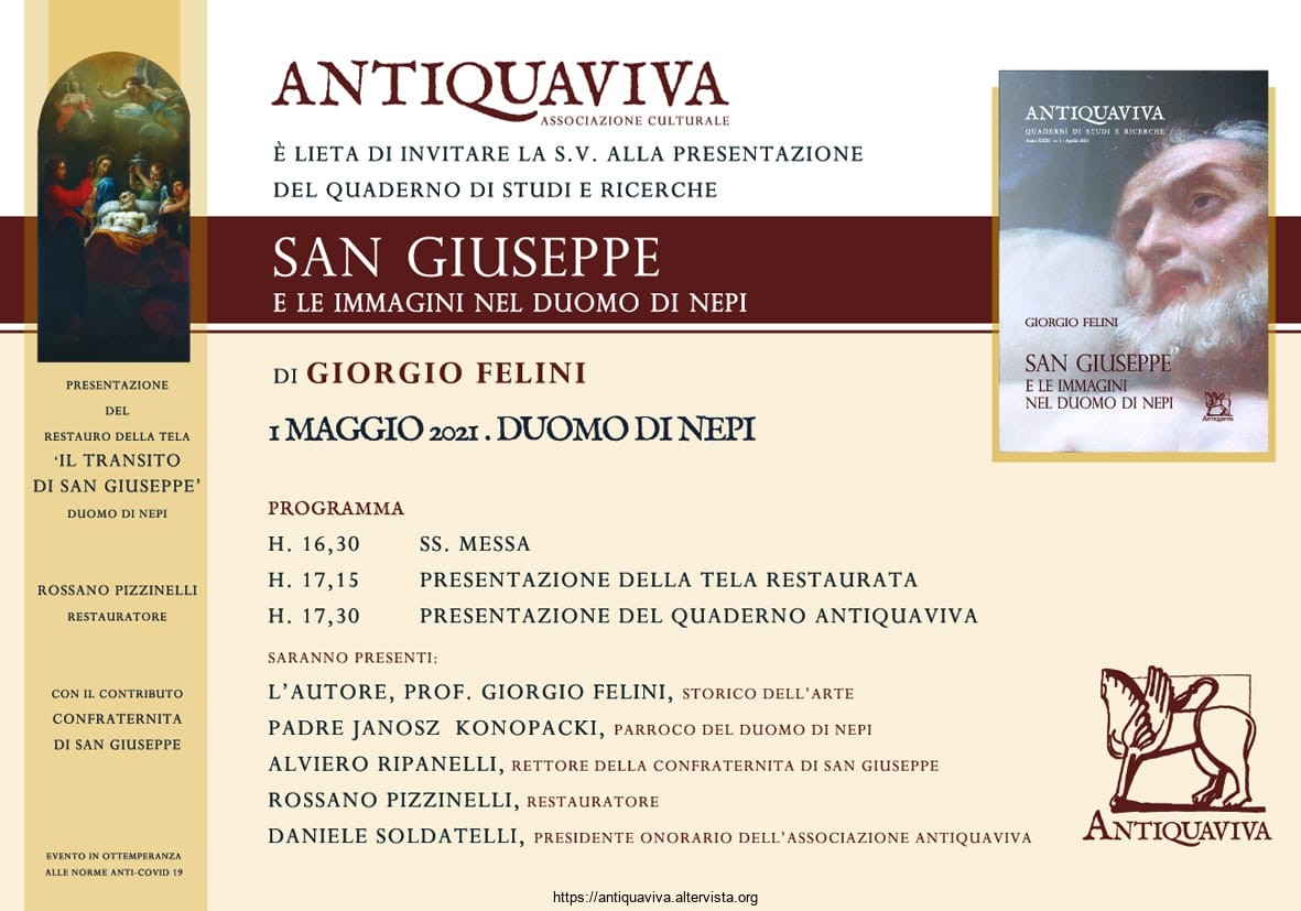 Martedì 30 Settembre ricordiamo Daniele Soldatelli, già presidente dell’Associazione Culturale “Antiquaviva” dal 1998, nonché vivace promotore e socio fondatore dell’Associazione “Festival Alessandro Stradella“, in cui ha ricoperto la carica di presidente dal 2014 al 2018 e di vicepresidente dal 2018 in poi. Ricordiamo e facciamo nostri il suo impegno, il suo entusiasmo, il suo amore per Nepi, la sua passione per la ricerca della bellezza, per la storia e per l’arte in ogni sua espressione. Vi aspettiamo numerosi. ANTIQUAVIVA ASSOCIAZIONE CULTURALE